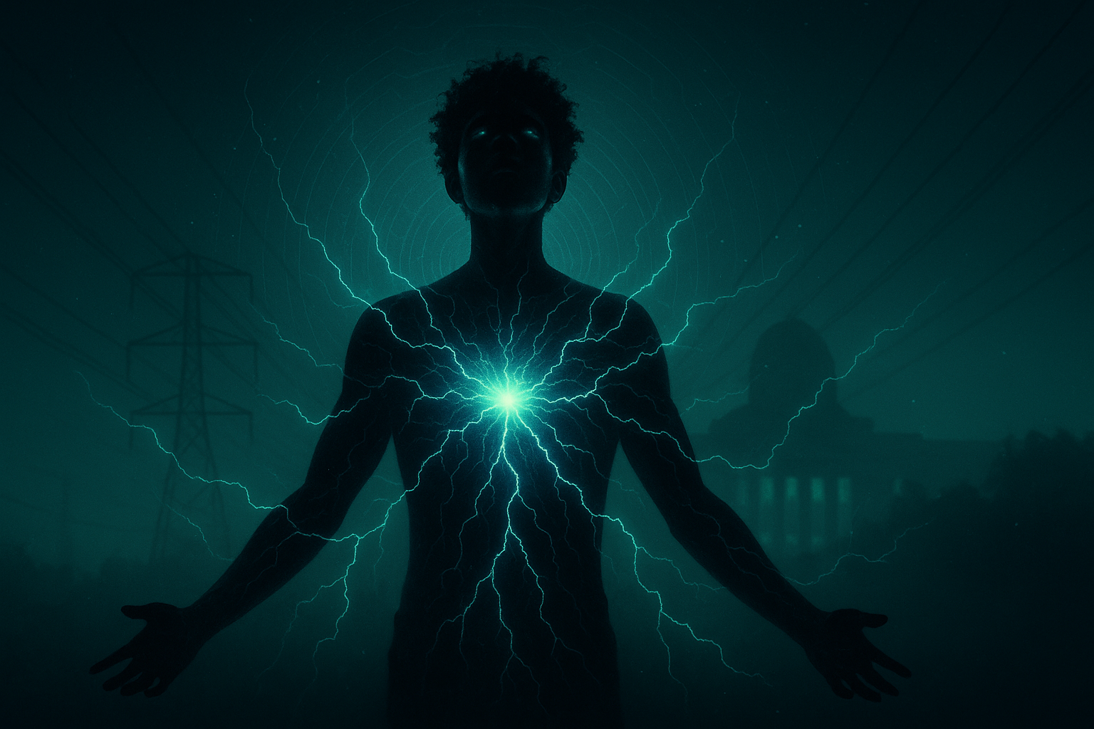Sixteen-year-old Nyx lives hidden in his grandmother’s attic in Norfolk, MA—skin black as midnight, silver, light-sensitive eyes, and a mind that hears the harmonies between electricity, thought, and light. After anonymously acing an elite maths exam, he’s discovered by MIT’s Dr. Evelyn Ives and caseworker Jess Harper. Nyx doesn’t force systems—he listens so deeply they move to meet him. When a massive solar storm threatens global collapse, Nyx proposes a radical plan: a synchronized three-minute global “Quiet Hour,” asking humanity to dim together so the surge slides past. It works. In the aftermath, Nyx leads a movement—energy as relationship, darkness as rest, habit over miracle—culminating in a live Great Dome speech that becomes a new civic ritual.